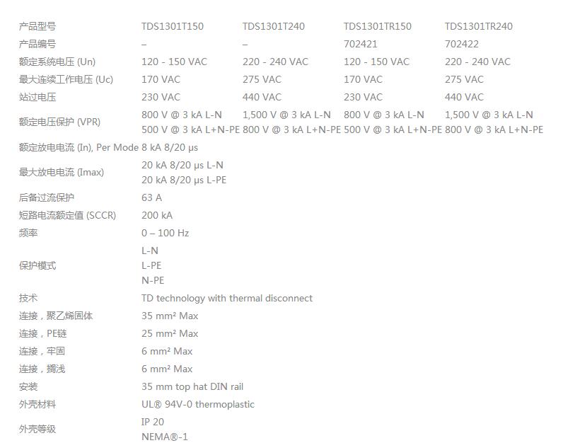 •  TDS浪涌保护器的详细参数