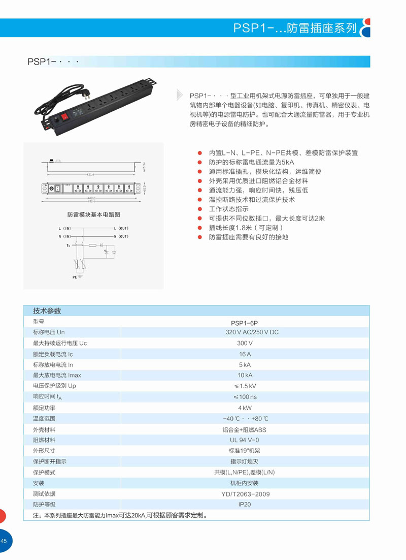 •  防雷插座的详细参数